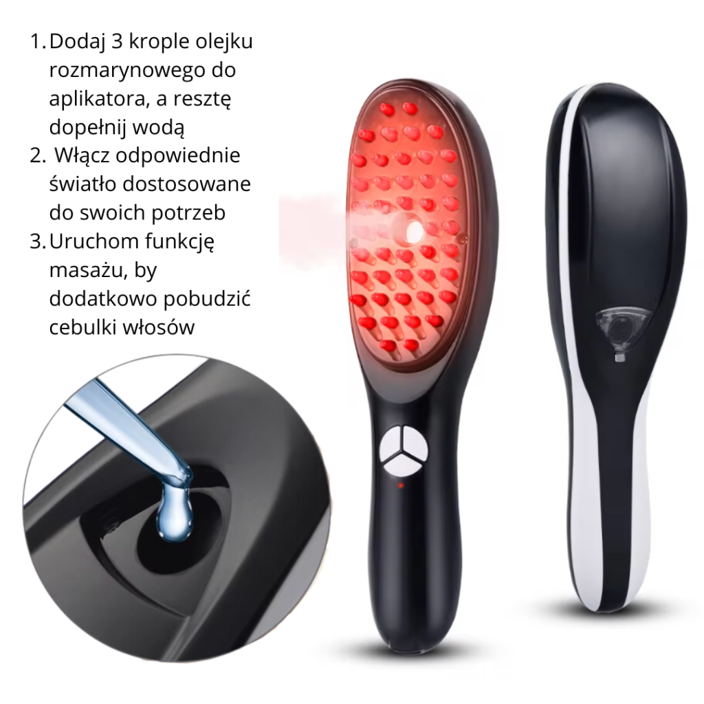 Szczotka Fotonowa stymuluje skórę głowy, co sprzyja wzmocnieniu cebulek włosów i poprawia ich kondycję. Połączenie światła LED i masujących wypustek sprawia, że włosy nabierają blasku, stają się mocniejsze i bardziej zdrowe.
